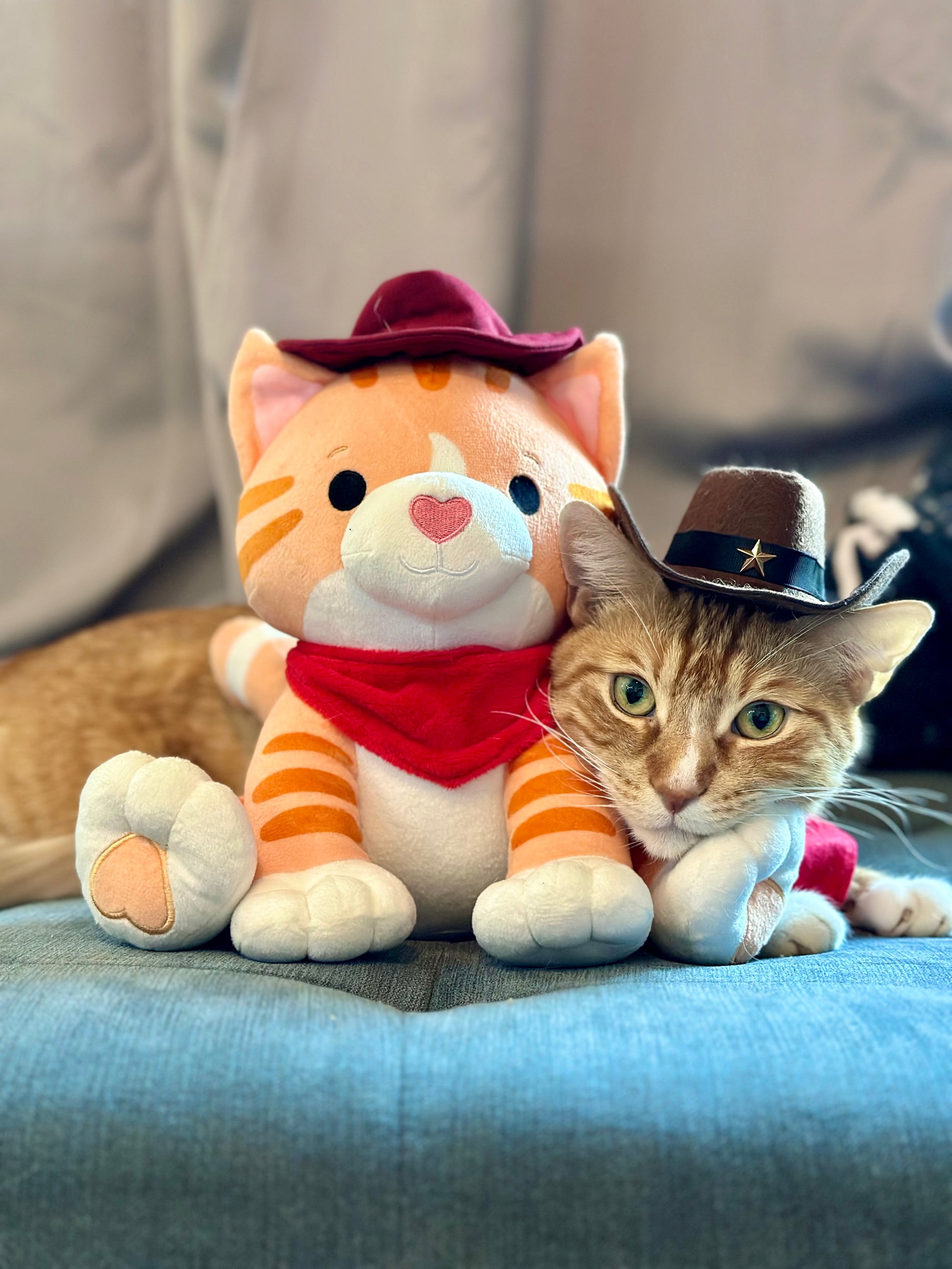 Want your own Meowdy to take home and cuddle? Here is your opportunity to take home a limited edition Calvin plushie. He comes complete with a heart nose, off centered nose stripe, and cowboy hat and bandana!
